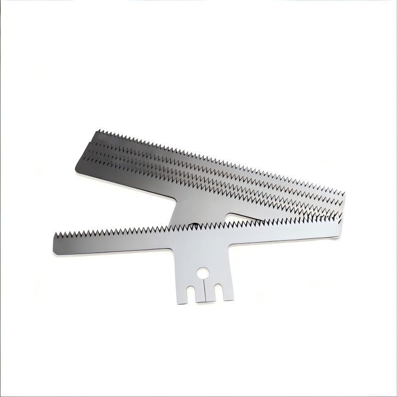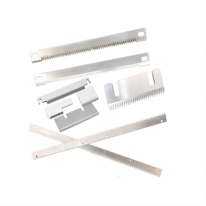 cuchillas dentadas de la máquina de envasadoLas cuchillas son herramientas de corte instaladas en equipos de envasado automático, utilizadas principalmente para cortar o sellar materiales de envasado flexibles como film, película plástica, película compuesta de aluminio y papel. Desempeñan un papel fundamental en las líneas de producción de envasado en industrias como la alimentaria, farmacéutica, química y electrónica, influyendo directamente en la calidad de la presentación y la eficiencia de producción de los productos terminados. La industria del envasado utiliza cuchillas para cortar o recortar materiales como cartón, película plástica y espuma. Se emplean en máquinas y equipos de envasado como cortadoras, troqueladoras y laminadoras.